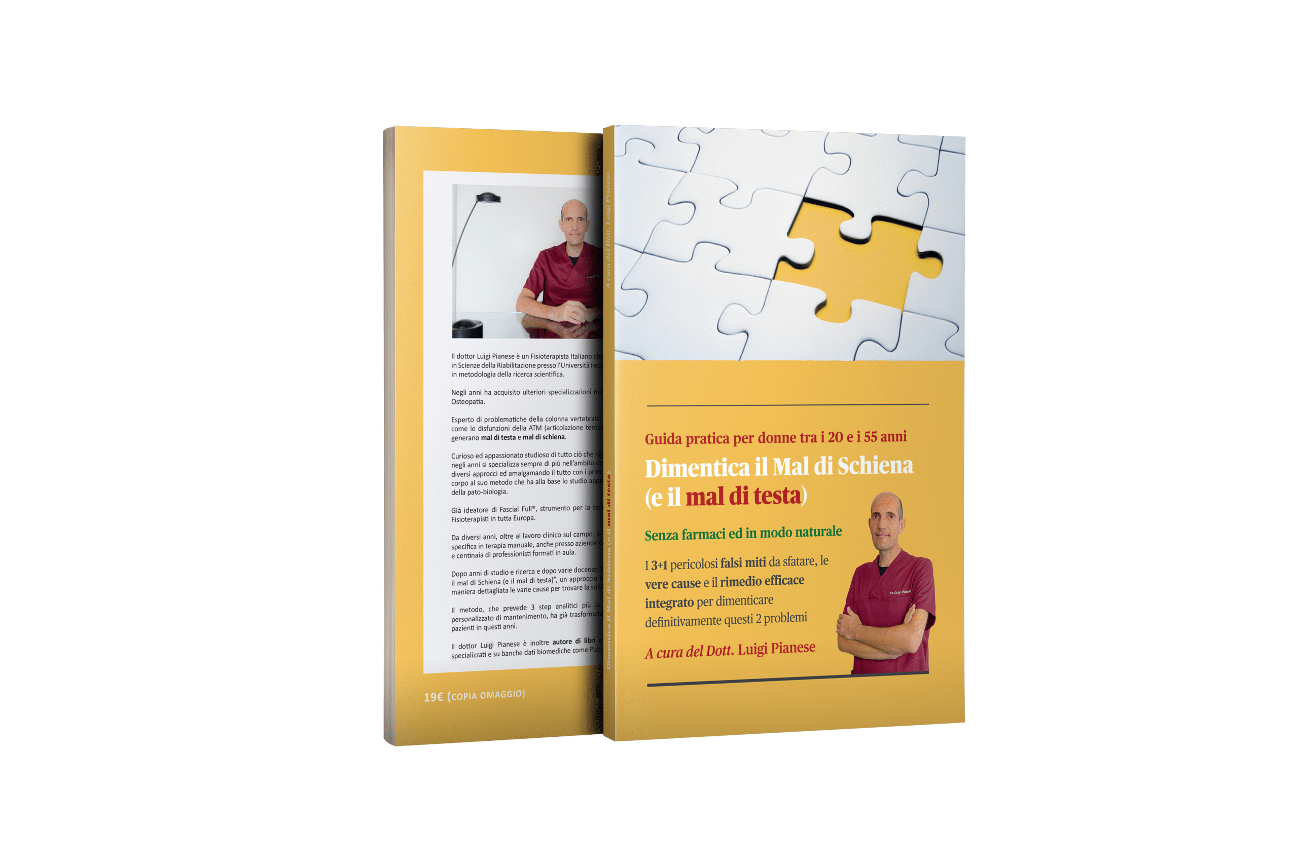 “Dimentica il mal di schiena (e il mal di testa)”, è il metodo scientifico ideato dal Dott. Luigi Pianese e rivolto in modo particolare a donne dai 20 ai 55 anni, che prevede 3 fasi ben definite più la rivalutazione con un programma personalizzato di mantenimento che ha migliorato la vita dei suoi tanti pazienti in questi anni.